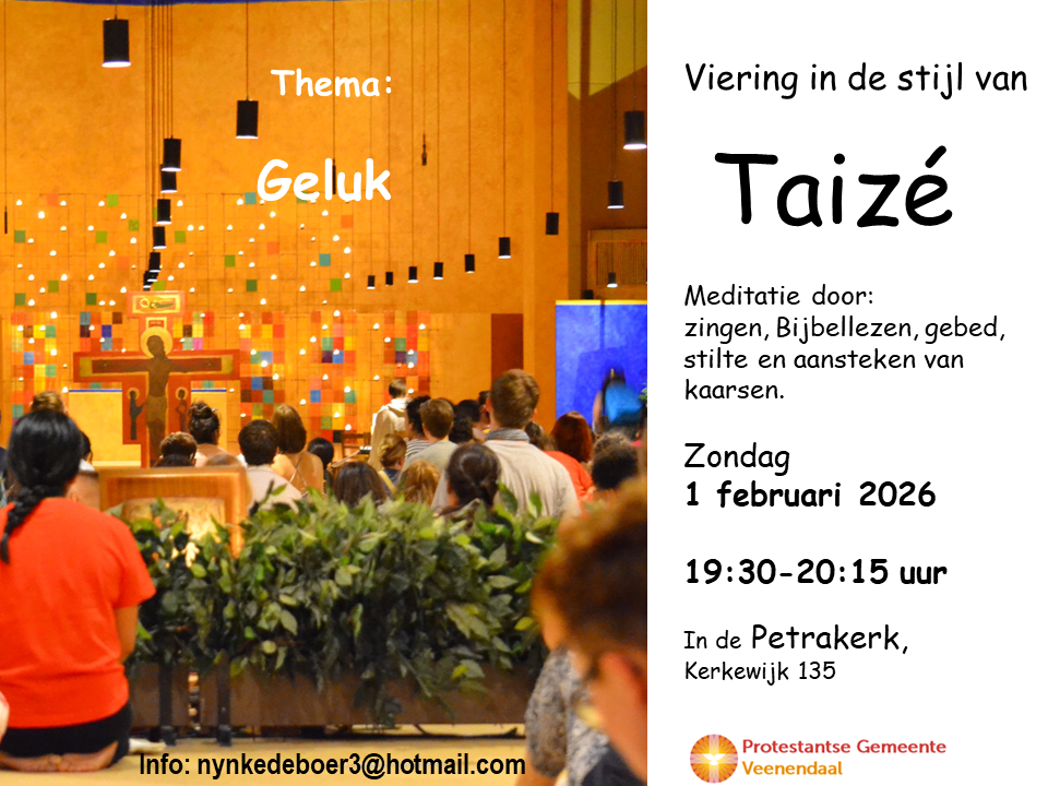 Volgende Taizéviering: 19 april 19:30 in de Petrakerk